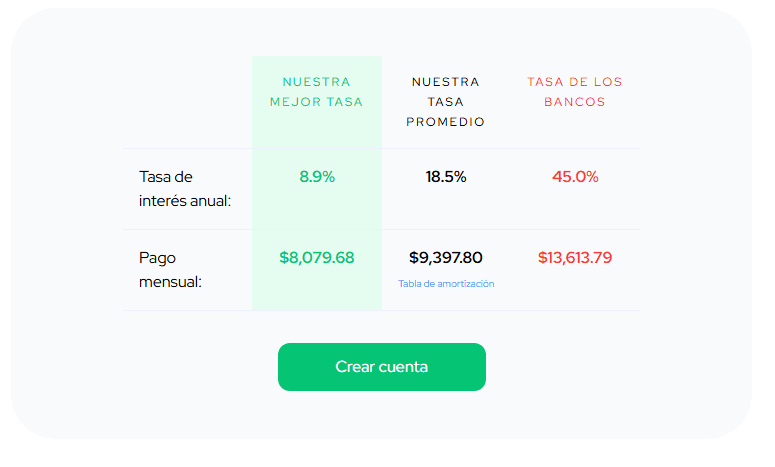 Los pagos mostrados son una estimación aproximada basada en los rangos de tasa de interés de YoTePresto. Tu monto final dependerá de tu historial crediticio y comprobante de ingresos, pero ¡tranquilo! YoTePresto trabaja con las mejores tasas del mercado para que obtengas condiciones justas.